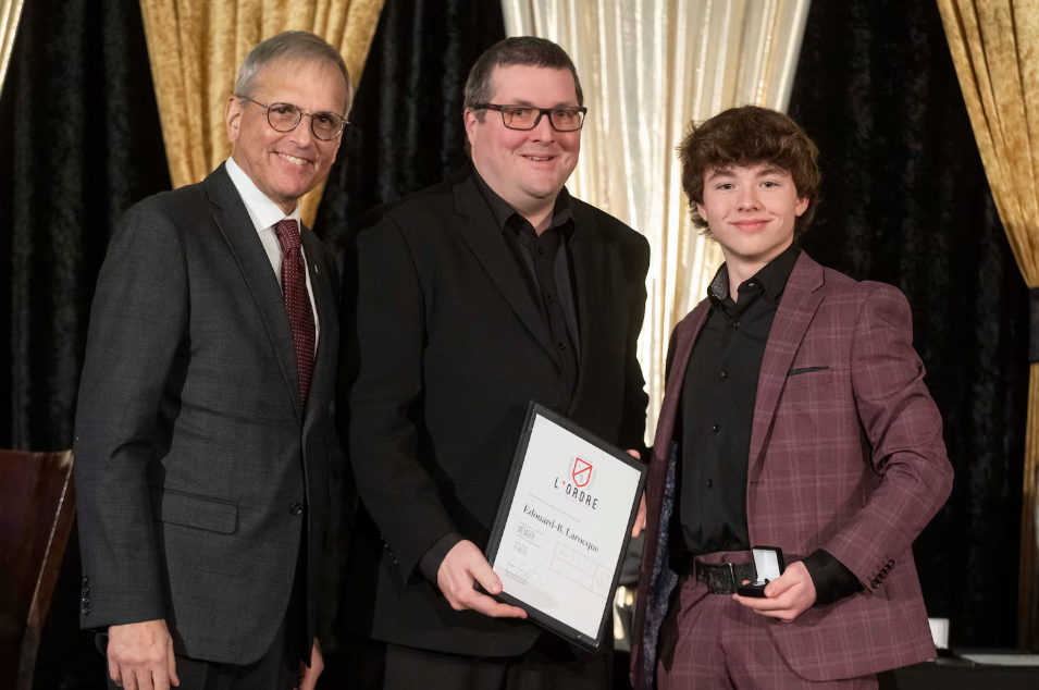 Édouard-B. Larocque, le jeune acteur de 14 ans qui tient le rôle de Georges dans la série À propos d’Antoine aux côtés de Claude Legault a été nommé Membre de l’Ordre de Drummondville, mardi soir.